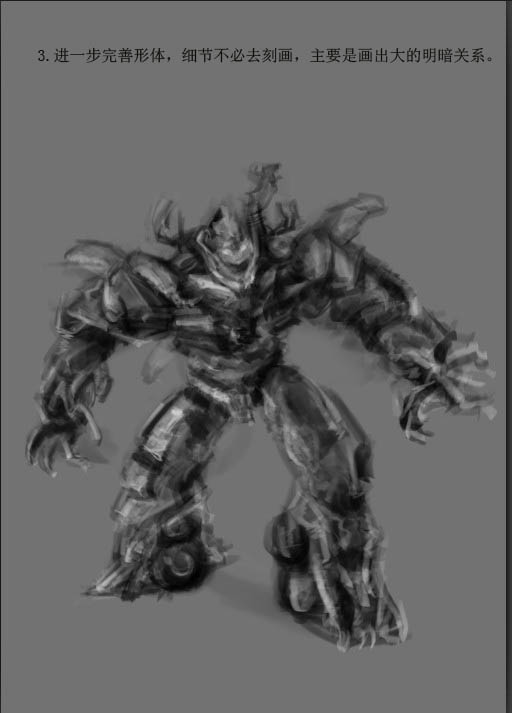 3、进一步完善形体,细节不必去刻画,主要是画出大的明暗关系。