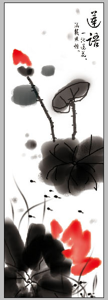 绘画之前,我们需要先设置好画笔属性,调出类似水墨感觉的笔刷。然后就找一些水墨画来参考一下,按照自己的思路画出简单的水墨画。